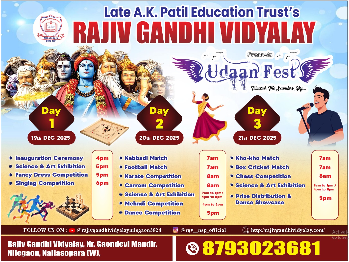 LATE A. K. PATIL EDUCATION TRUST’S RAJIV GANDHI VIDYALAY envisions being the best school to produce self-motivated lifelong learners who will be dynamic and proactive leaders in their chosen fields. The school strives to create an appreciation and understanding and respect of various cultural backgrounds and national heritages in order to help the child face the changing world of today, thereby, preparing them to take an active and responsible role as a citizen in the world of the future. We aspire to cultivate and develop the character of the children, to guide their minds towards independent, liberal, creative thinking, to strengthen their wills, and to inculcate tolerance and understanding for all their fellows.NEWS